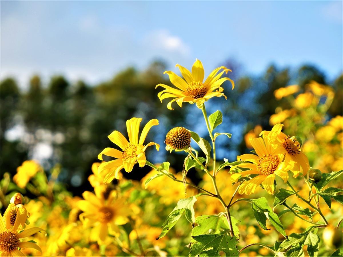 山肌をブアトーン(メキシコヒマワリ)の金色で覆い尽くす「ドイ・メー・ウーコー」(2018年11月22日撮影)