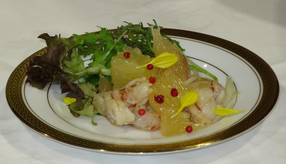 ソムオーのむき方、食べ方のデモンストレーションの後、タイ料理研究家の長澤恵さんによるソムオーを使ったタイ料理が紹介された。紹介された料理は「ソムオーと生海老の前菜」「ソムオーとイカ、ディル風味のおすし」「ソムオーのミント塩シロップマリネ」の3品。