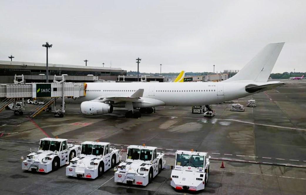 2024年4月25日、成田空港第2ターミナルに、真っ白な「タイ エアアジア X A330-300」機体が駐機していた。9時15分発のバンコク行き、XJ601便だ。操縦席の位置にタイ王国の国旗と会社名が描かれている。