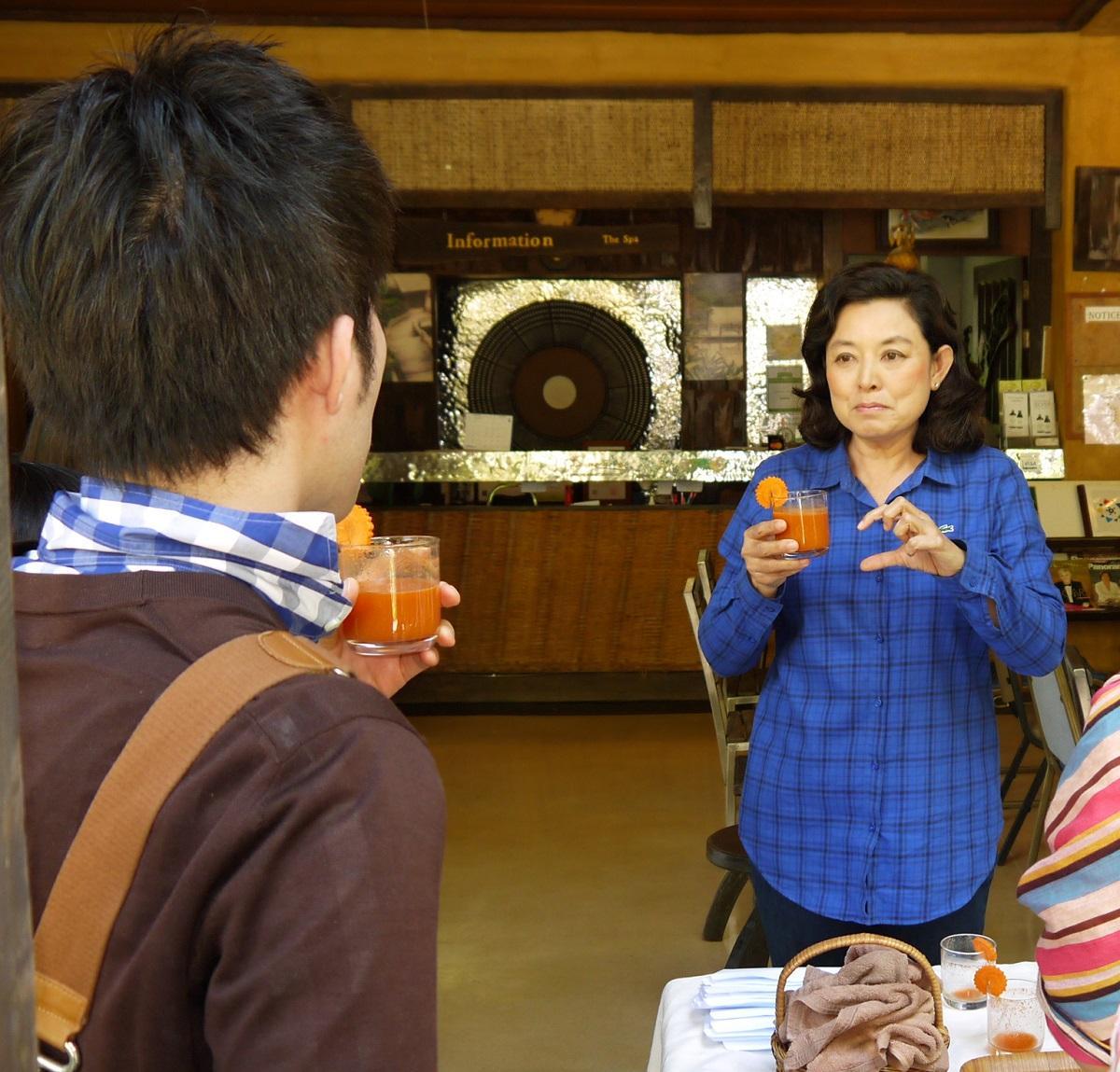 お勧めの宿泊先、ザ スパ リゾート コ チャンは、デトックスコースのある施設。体質に合わせた一人一人のパーソナルメニューで、健康促進の効果を期待できる。また、ヨガ指導にも定評がある。野菜はタイ王室が運営しているロイヤル・プロジェクトから仕入れる有機栽培の新鮮なものが中心。特製健康ジュースとして人参80%とリンゴ20%をベースに生姜を加えたドリンクは飲みやすく、ドッキリとするナチュラルテイストで雑味が無いと高評価だ。宿泊者の80%は欧米人で、残り20%がアジア人。オーナーのピラヌットさんは「マングローブに囲まれた自然豊かな環境で、1週間以上滞在してリフレッシュしていただくのに最適です」と話す。