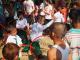 寄付金は、全国のイオン店頭などで来店客から寄せられた「ミャンマー学校建設支援募金」と、イオングループ主要企業各社で構成されるイオン1%クラブからの拠出金を合わせたもの。写真は、ミャンマー学校開校式で交流する子どもたちの様子。(C)日本ユニセフ協会。