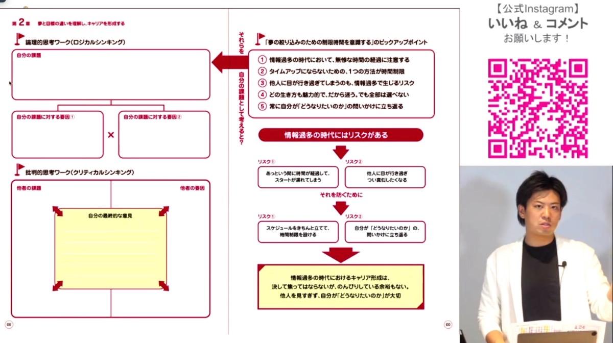 講義は受講生自身の思考力(「ロジカルシンキング」と「クリティカルシンキング」)を鍛えるためのプログラムが導入されており、それぞれのテーマについて自ら考えるワークの時間が多く取られた。