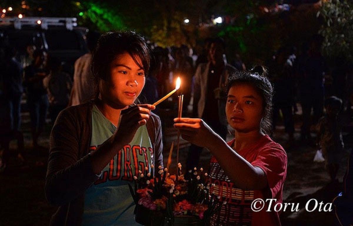 特にメコン川沿いの地域では、闇夜の大河に流される灯籠の光が幻影的な列をなし、見ているだけでも静粛な気持ちになる。