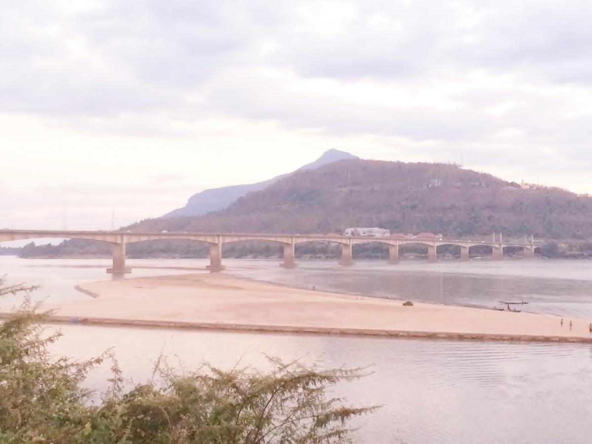会場の脇にかかる「ラオス・日本橋」日本のODAで2000年に建設された。