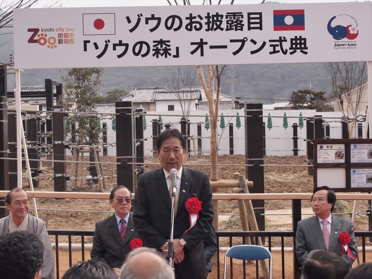 2015年2月28日、ラオス政府との友好関係を強化している京都市は、昨年11月に京都市動物園に到着した子ゾウの公開を記念して『ゾウのお披露目「ゾウの森」オープン式典』を開催した。ケントン・ヌアンタシン駐日ラオス大使も列席した。
