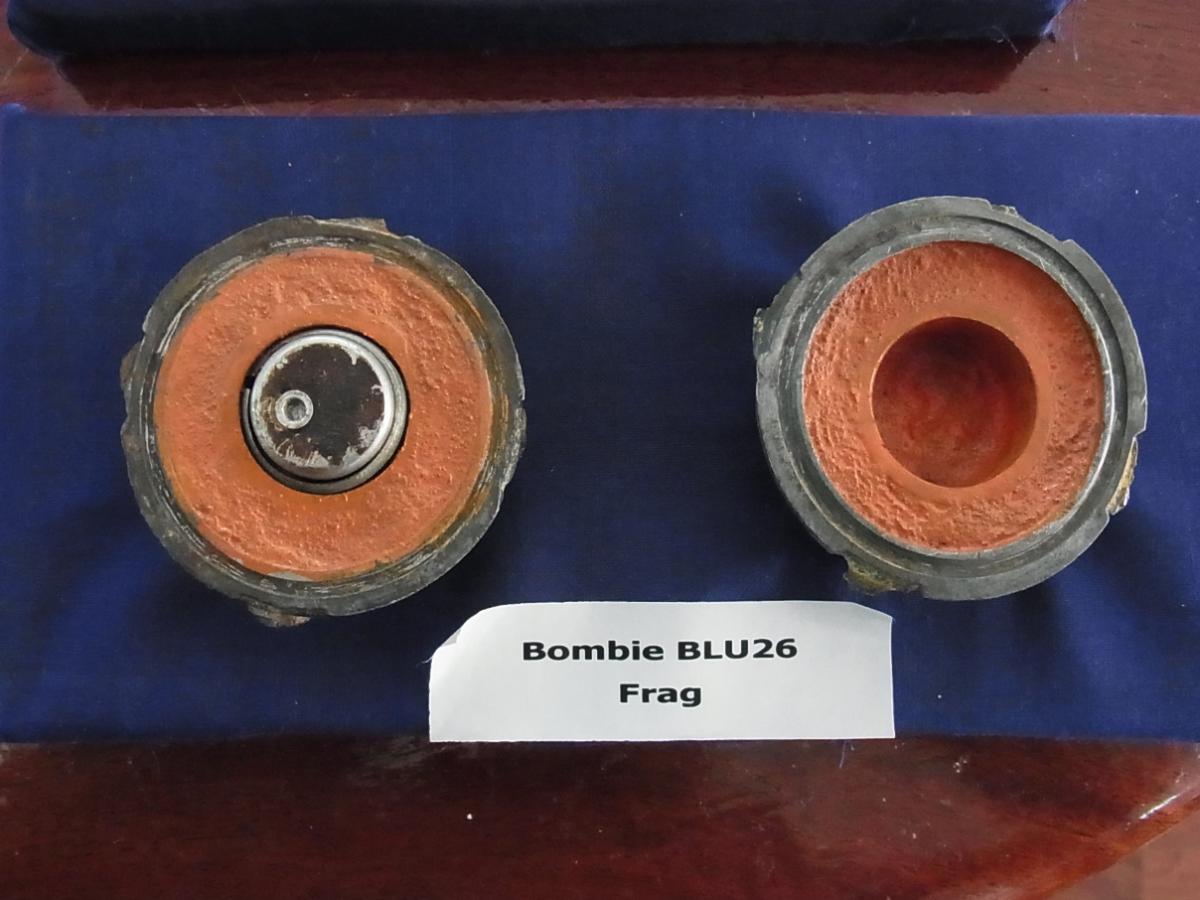 JMASビエンチャン本部に展示されていたクラスター爆弾の不発弾。