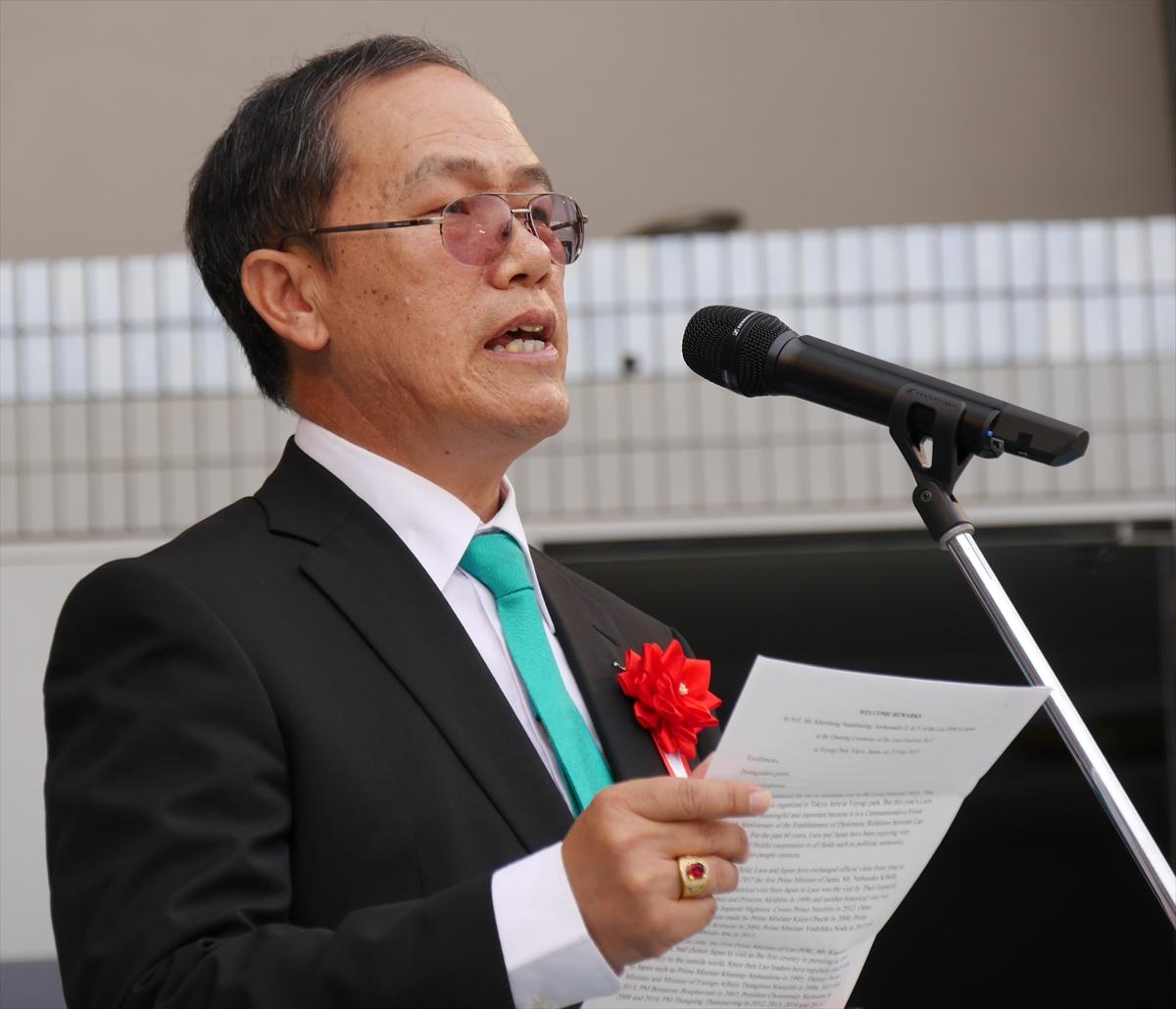 開会式で挨拶する、ケントン・ヌアンタシン駐日ラオス大使館特命全権大使。(5月23日午前撮影)