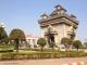 ラオスの首都ビエンチャン中心部にある凱旋門。向こう側に見えるのは首相府の建物。