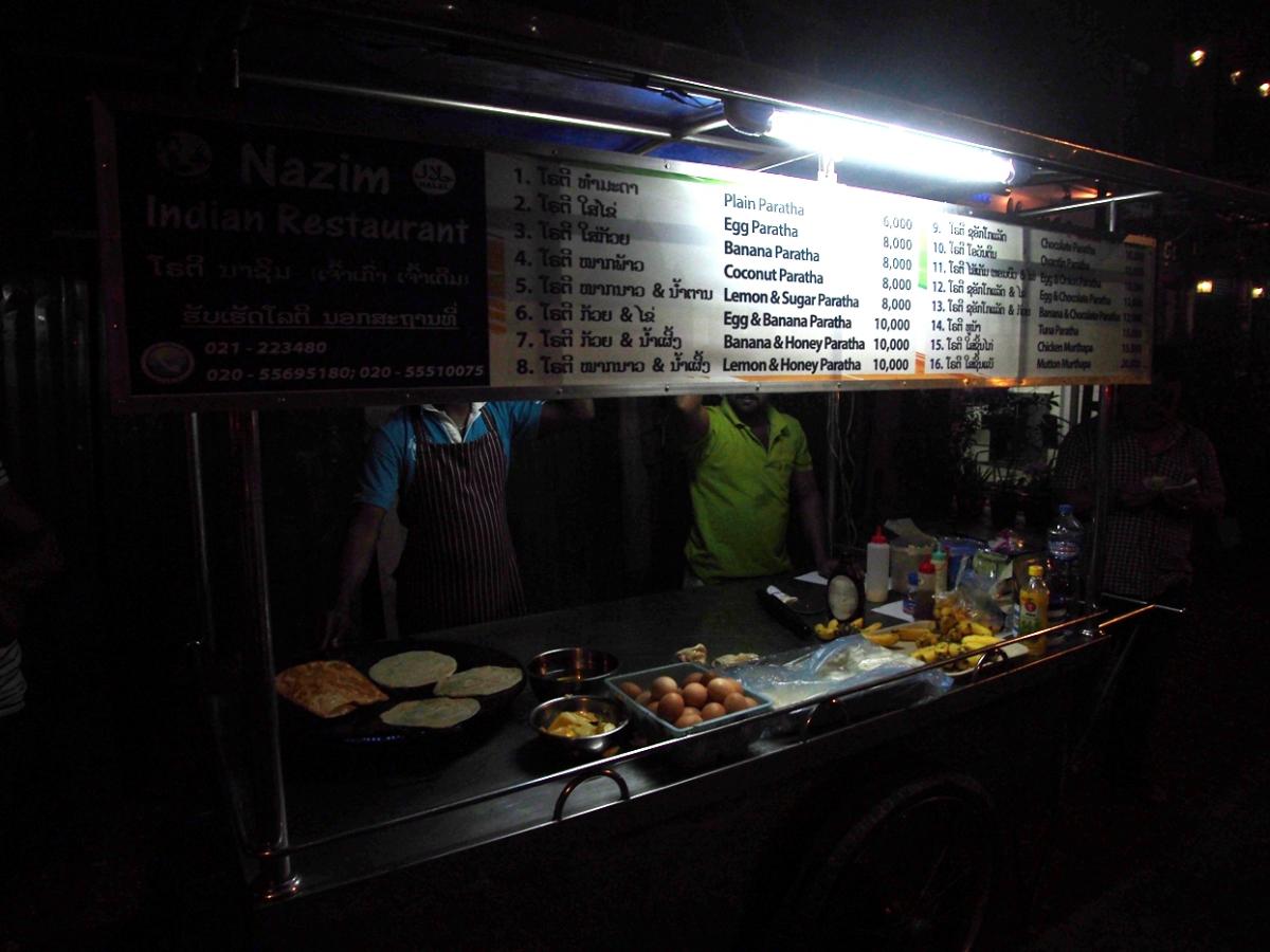 また、在住インド人の中にはロティを販売する屋台を引いている者もいる。インドでロティというとパンのようなものになるが、ラオスやタイなどではクレープに近いもので、そのままやバナナを入れたものにチョコレートもしくは練乳をかけて食べるスイーツになる。メコン河沿いの通りに出ているロティ屋台はナイトマーケットの開業時間に合わせて営業しているようで、連日外国人客が並んでいる様子が見られる。