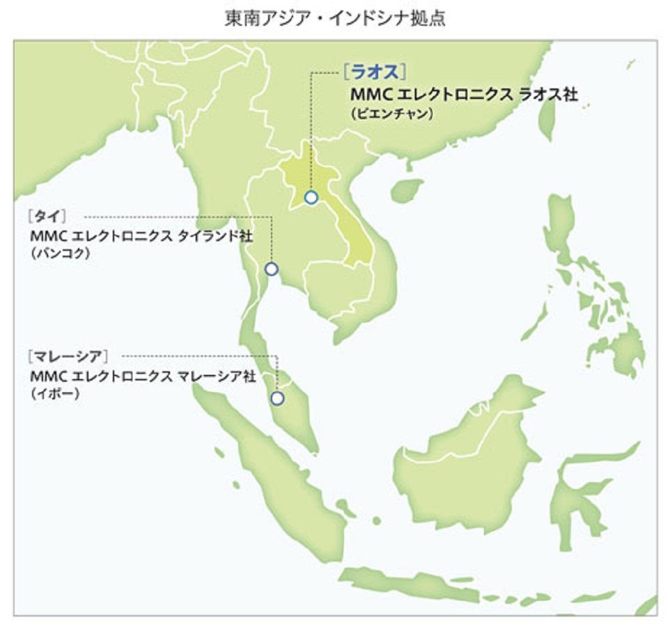 三菱マテリアルはこれまではタイとマレーシアで生産していたが、労務費用が上昇傾向にあり、今後の増産体制について検討した結果、労務費用が比較的安くて勤勉、政府の投資奨励策による優遇処置、既存生産拠点からのノウハウ移転の容易性などの面からラオスでの子会社設立が決まった。