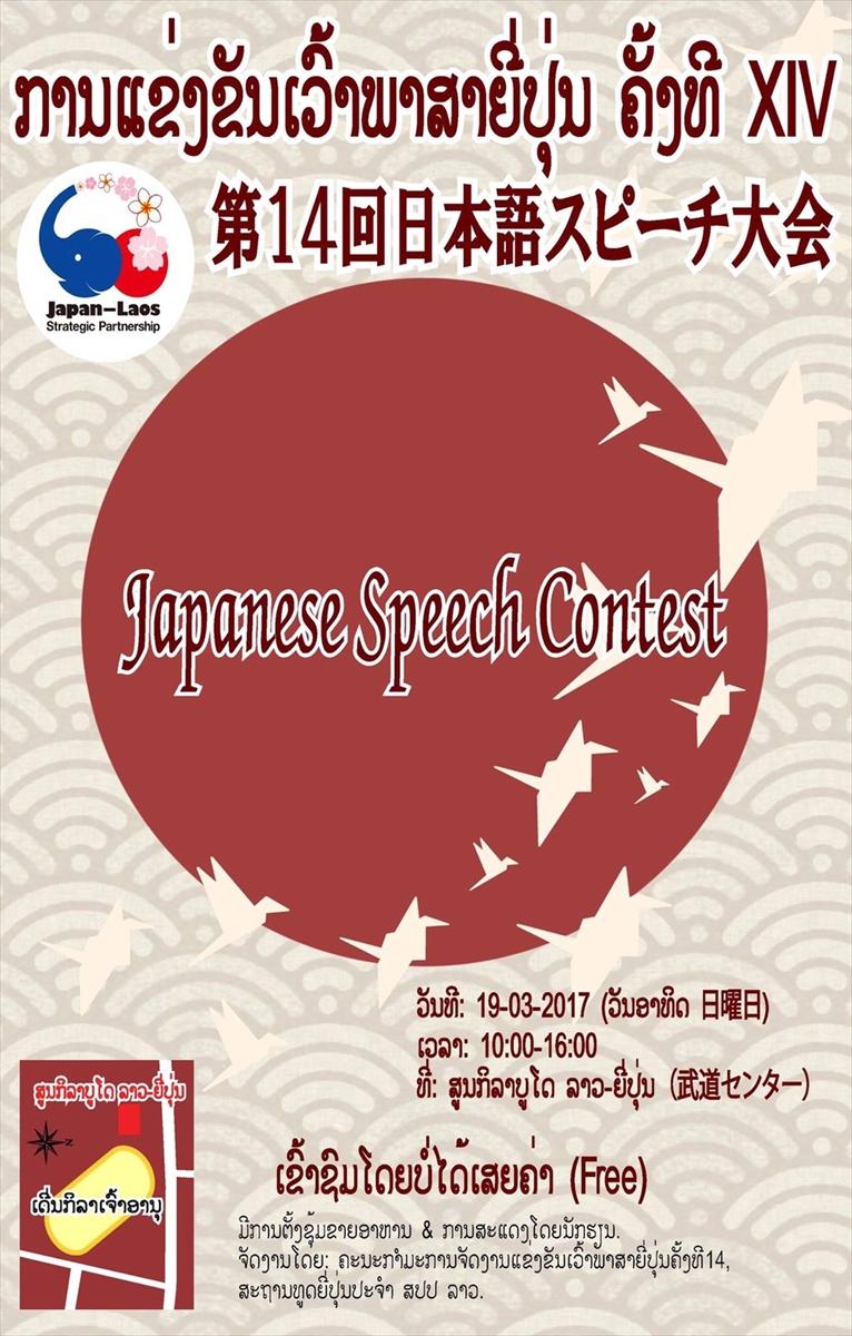 2017年3月19日、第14回『日本語スピーチ大会』がラオスのビエンチャン武道センターで行われた。ラオスの日本語教育機関と、在ラオス日本大使館が運営する日本語スピーチ大会運営委員会が主催。