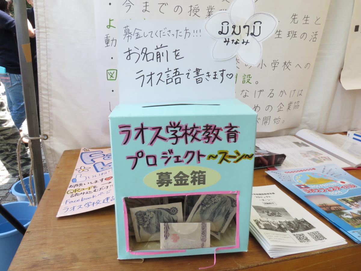 草の根支援としては、東京国際学園高等部が1996年から、「ラオスに学校をつくろう」という運動をおこなっており、すでに7校の学校を建設した実績がある。今回81番ブースでは、ゲームに参加すると、そのお金がラオスの小学校建設資金となり、建設主になることが出来るイベントを行っている。また、早稲田大学ラオス学校建設教育支援プロジェクト・スーンや、青年海外協力隊ラオスOV会など、多くの教育支援ブースが出店している。ぜひ、プチ国際貢献してほしい。