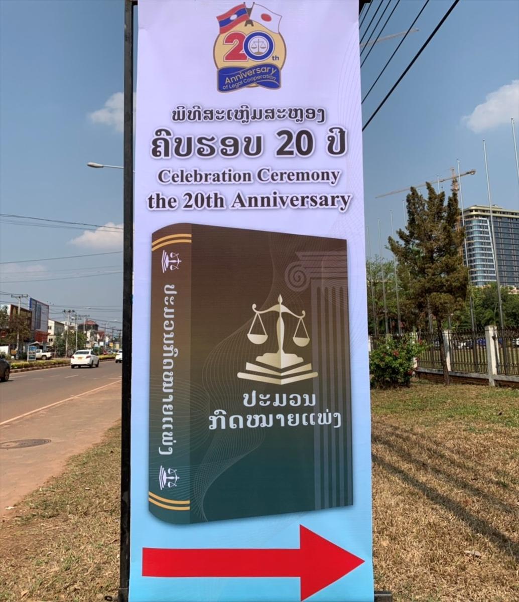 日本のラオスに対する法整備支援20周年と、ラオス史上初の民法典の成立を祝う式典 案内板