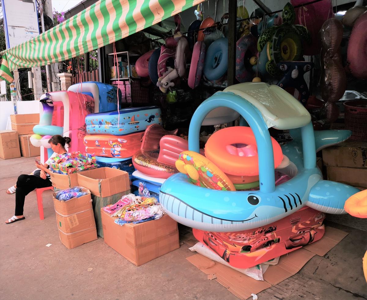 かなり精度の高い「ちびまる子ちゃん」をコピーした水鉄砲も売れ筋商品としてラインナップ。定番の偽物ハローキティは完成度が低いようだ。