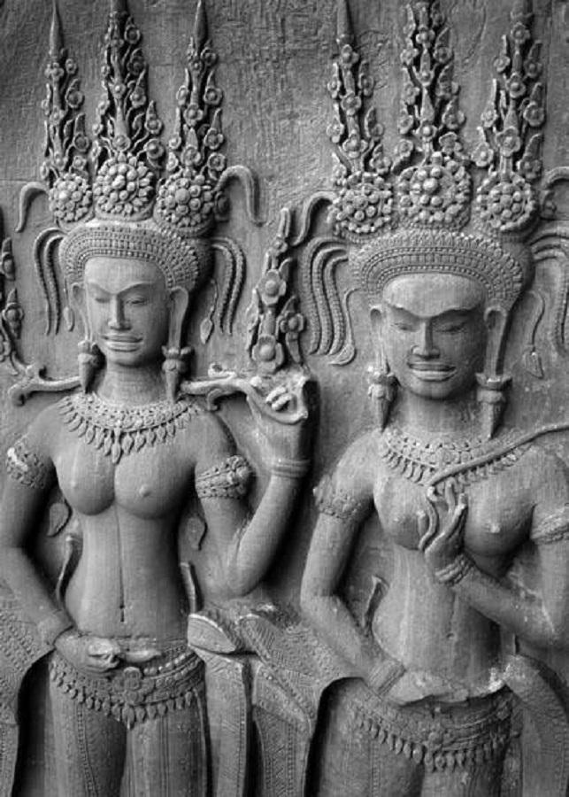 アンコールワット遺跡には、クメール時代の彫られた半裸の女性をかたどった彫像があり、写真はそれらを模したものと思われる。