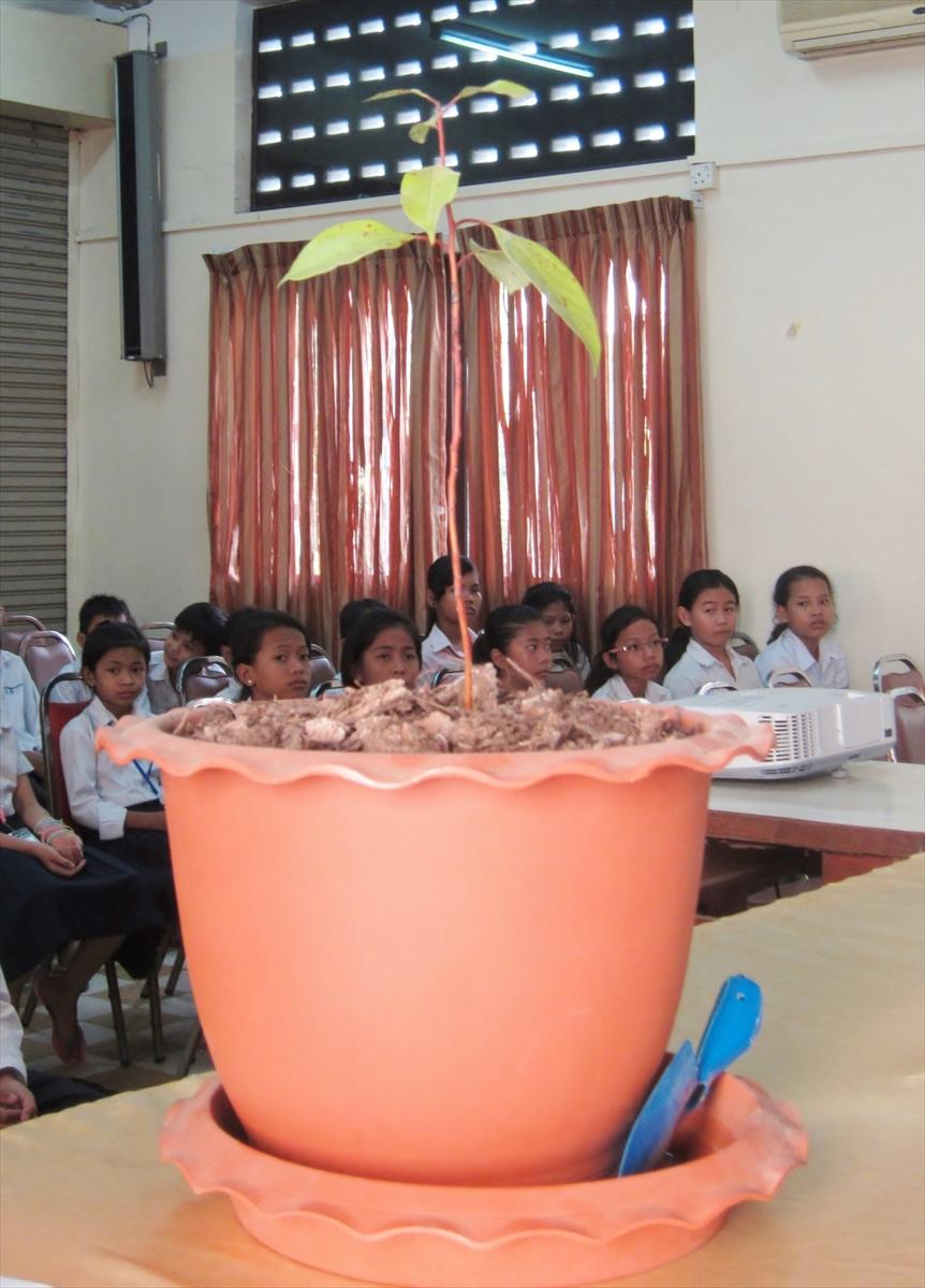 2015年3月6日、JICAカンボジア事務所は、教育・青少年・スポーツ省カリキュラム局で、被爆樹木の苗を贈呈するセレモニーを開催した。