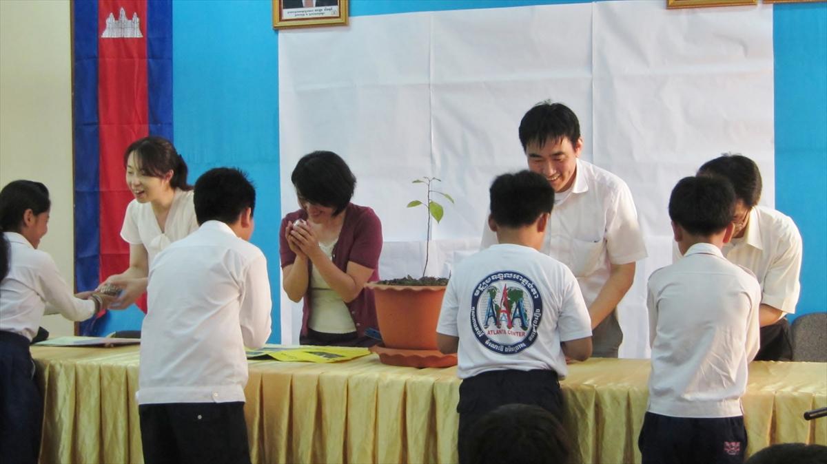 2015年3月6日、JICAカンボジア事務所は、教育・青少年・スポーツ省カリキュラム局で、被爆樹木の苗を贈呈するセレモニーを開催した。