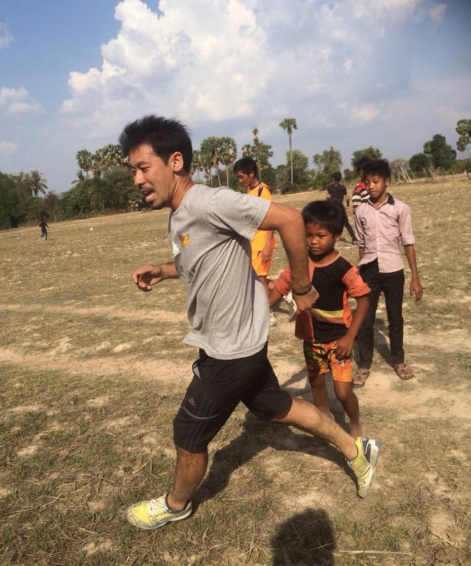 ティー選手は、カンボジアンタイガーFC所属。キャプテンで、35才。タイリーグなどでのプレイ経験もある。イキイキ幼稚園がある村の近くに住んでいた。シェムリアップ市内から片道2時間以上かかる農村地域。難民キャンプの出身で、農村部から姉と一緒に勉強するために、プノンペンに行きサッカー選手になった。村出身でサッカー選手になったティーさんは、あこがれの存在でもあり、ティーさんの話を子どもたちは目を輝かせて聞いていた。