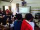 蒸し暑い教室で、子どもたちは汗いっぱいになっても、真剣なまなざしでスクリーンを見つめていた。