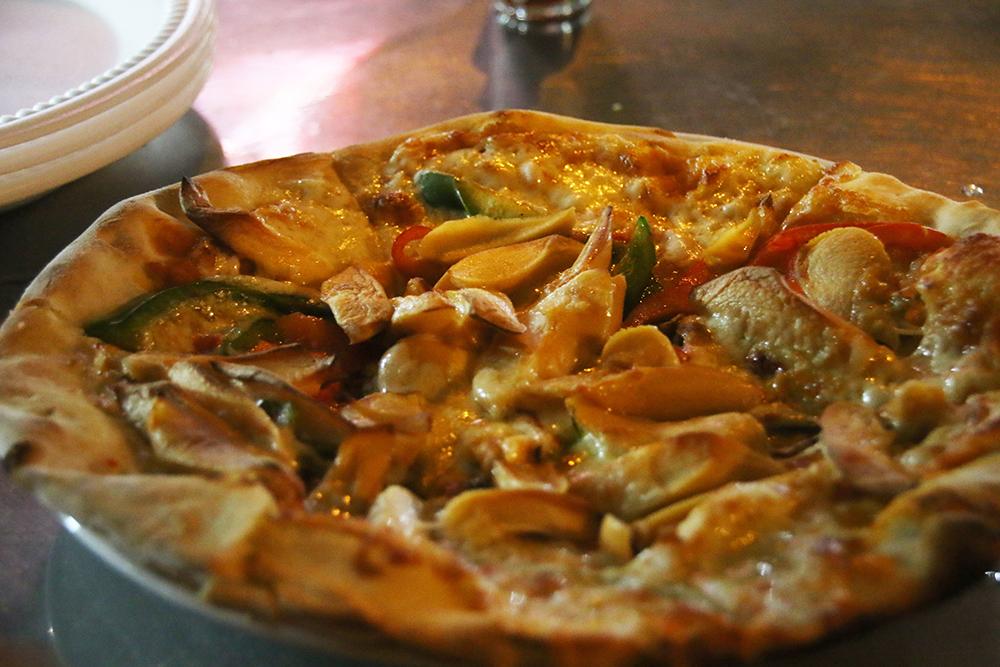 薄く伸ばされた生地はパリパリで香ばしく、たっぷりのチーズで覆われたドラム缶ピザは、在住者から人気であることが頷ける一品だ。