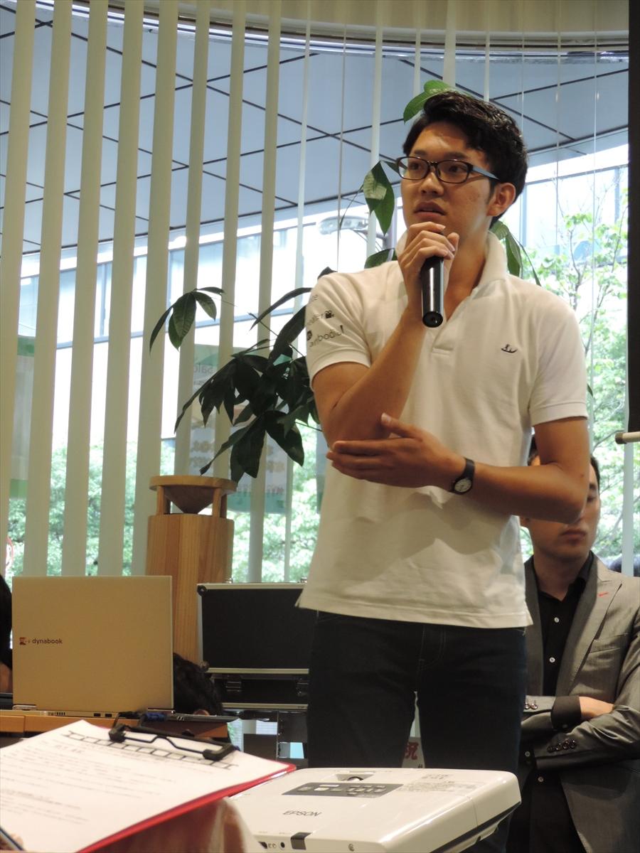 活動報告をする上智大学3年生の山下龍彦さん(茅場町のソーケンソーシャルサロンにて)