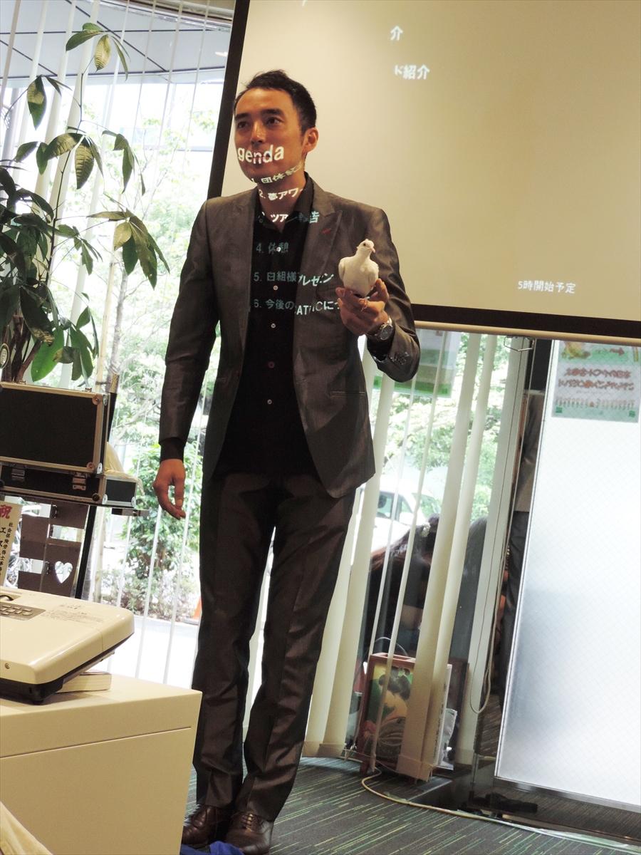 報告会の進行を務めたのは、IT企業に勤めながらマジシャンとしても活躍する岩城信二さん。