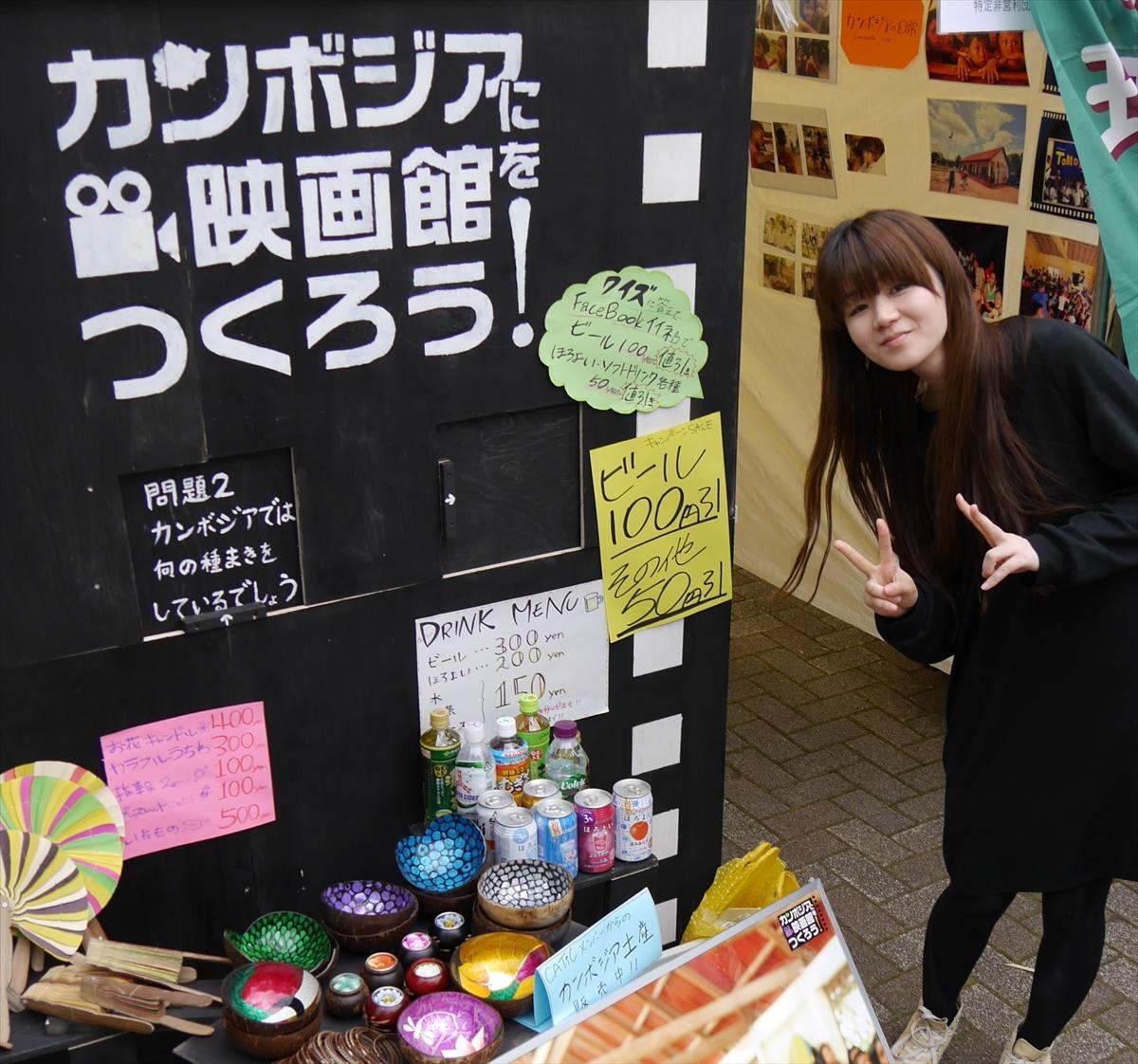 カンボジアの電気がない地域に住む子ども達に映画を届けているCATiCのカンボジアフェスティバルブース(4月25日午後、東京・代々木公園ケヤキ並木で撮影)