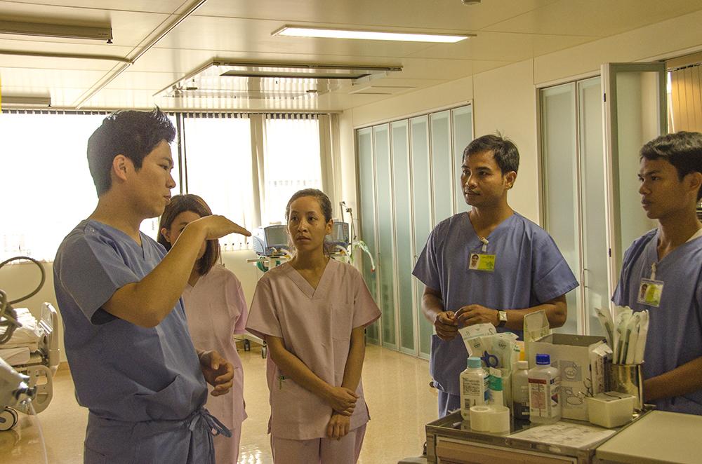 Sunrise Japan Hospitalでは、このようなカンボジアの医療状況を改善するために、現地での高度な医療の提供だけでなく、医療者や市民への教育、啓発を行う。その一環として、2015年5月から、カンボジアからスタッフ候補者を東京の病院(北原国際病院など)に招聘、日本の医療技術とホスピタリティを教えている。