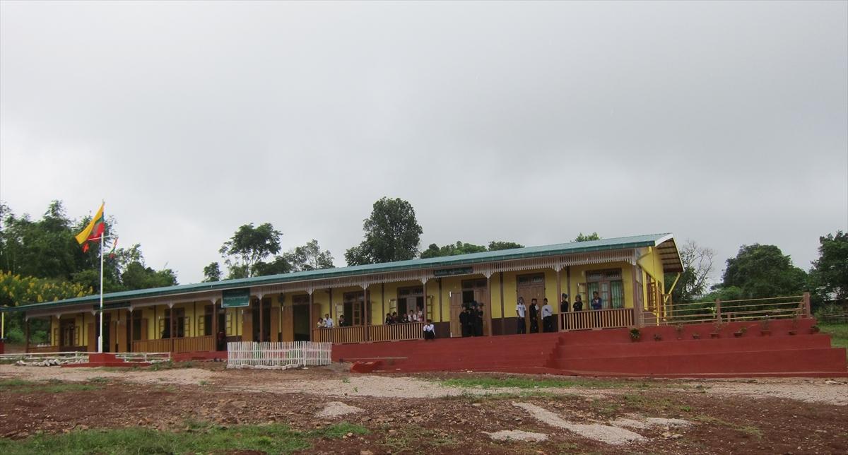 こうして基礎工事着工から半年。平屋建てで、小学校各学年用の5教室と図書室を備えた新しい校舎が完成した。テクノロジーの普及がミャンマー少数民族地域の学校建設現場に変化をもたらしているが、新しい校舎は、建設に携わった大勢の住民の努力の賜物であることに変わりない。