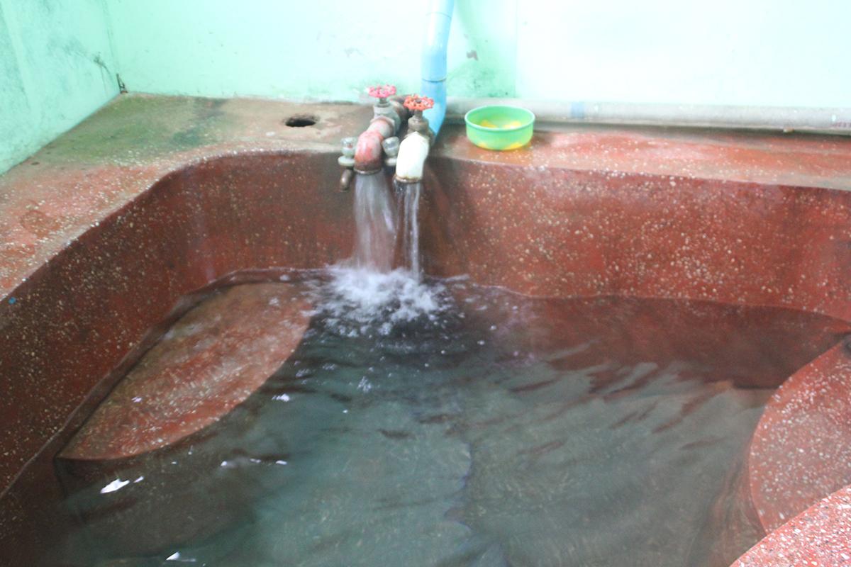個室には、2メートルほどのコンクリート造りの浴槽があった。客が来てからお湯を張る。スタッフが何やら裏で操作をして、お湯を流すのだが、なかなか熱くならない。10分以上格闘して、やっと熱湯がでるようになり、湯船があたたかくなってきた。
