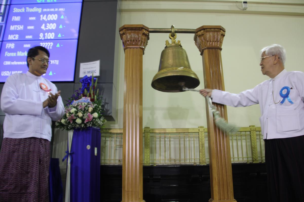 今年1月に行われたファースト・プライベート銀行の上場セレモニー(ヤンゴン証券取引所、撮影:北角裕樹)