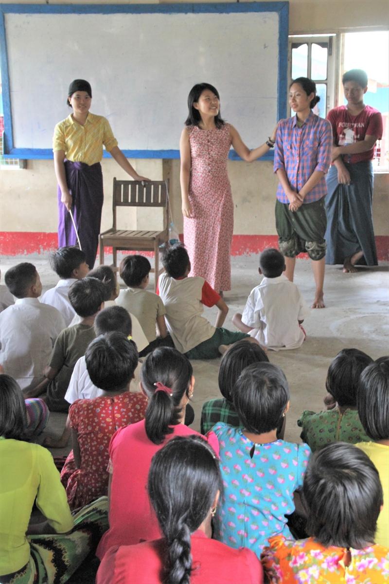 日高さんは、2016年から日本の官民で推進する「トビタテ留学JAPAN」の制度を使って渡緬。当初は図書館の設立を目指していたが、活動を続けるうちに、実際の教育に携わる方向に転換。2016年10月にミャンマー人の女子大生のニラさんらとともに、団体を立ち上げた。昨年11月にヤンゴン地方の電気がない地域の僧院学校で行った活動では、友達がけんかをしてしまう内容の演劇を演じて何がいけなかったのかを考えさせるプログラムを実施。その後、絵本などの読書会を行った。