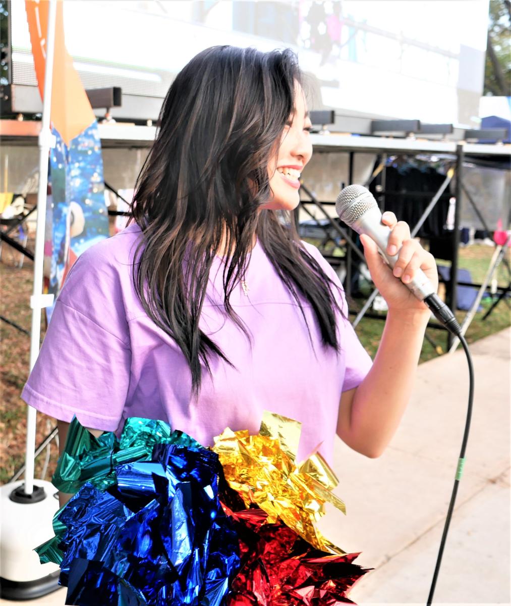 2021年10月に開催されたフィリピン・エキスポでも、人気が高かったチアダンス体験会。チアの最高峰と言われているNFLチアリーダーを目指す井上紗奈江さんは、チアを通して世界中に笑顔の連鎖を作る事を目標に活動している。