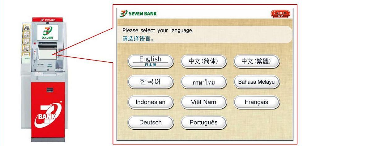 2015年3月27日、セブン銀行を運営する株式会社セブン銀行(東京都千代田区)は、海外発行カード利用時の対応言語を現在の4言語から12言語に拡張すると発表した。実施時期は2015年12月頃を予定している。