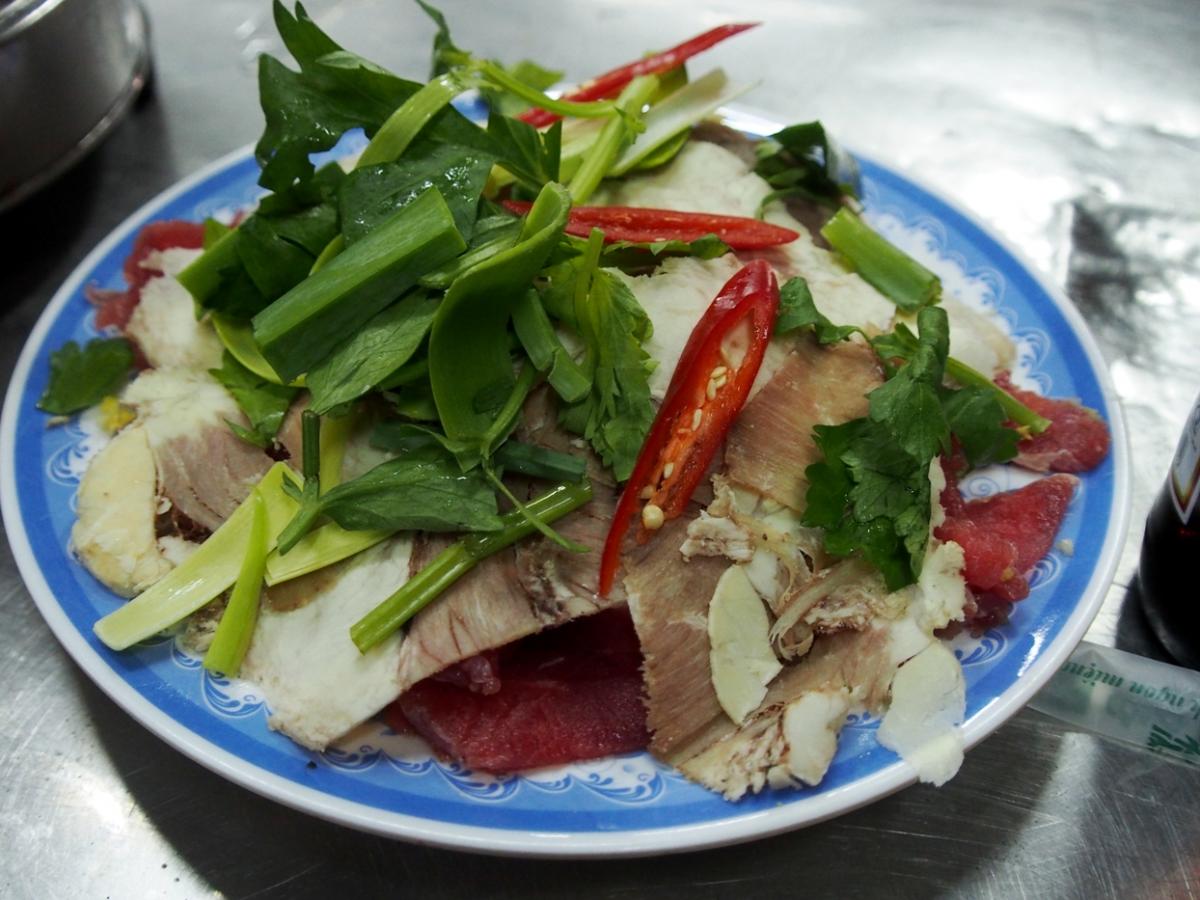 スープの出汁は薄めだが、セットの具材を煮込んでいくうちに味わい深くなっていく。たっぷりの野菜がセットとなっており、肉も硬めで賛否はあるかと思うがおいしい。タレは塩に完熟ライムを絞ったシンプルなもの。またシメのためのインスタント麺も料金に含まれていた。