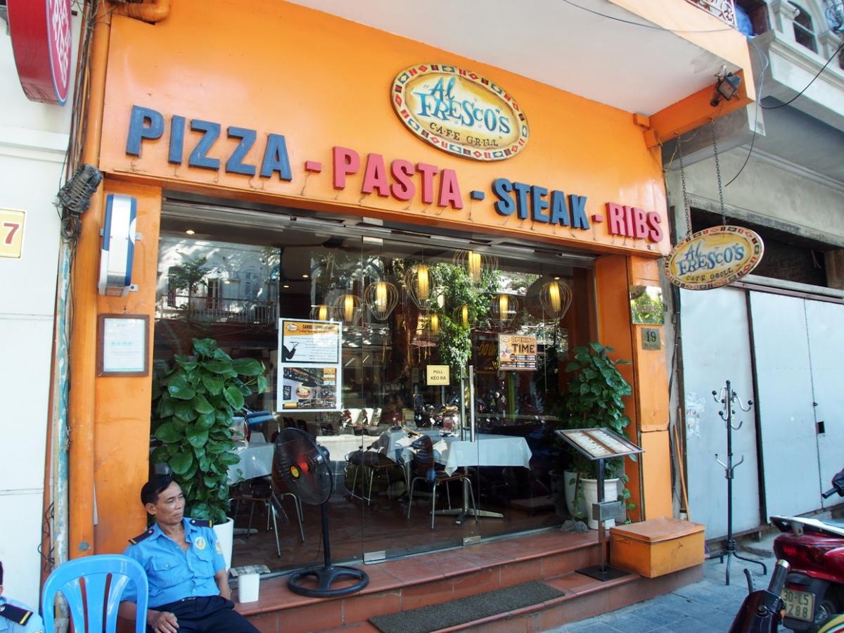 ハノイ大教会の周辺にある安宿街の中の飲食店もピザの店がなぜか多い。例えば「アル・フレスコズ」はランチにセットメニューもあり、ピザ各種やパスタが人気。肉料理も料金のわりにボリューム満点の店である。
