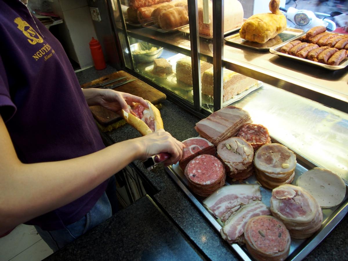 ベトナムのサンドイッチはバインミーと呼ばれる。最近は日本でもバインミー専門店もできたり、人気の高さが伺える。ハノイでは多くの店でレバーパテを塗り込み、各種ハムなどを入れている。