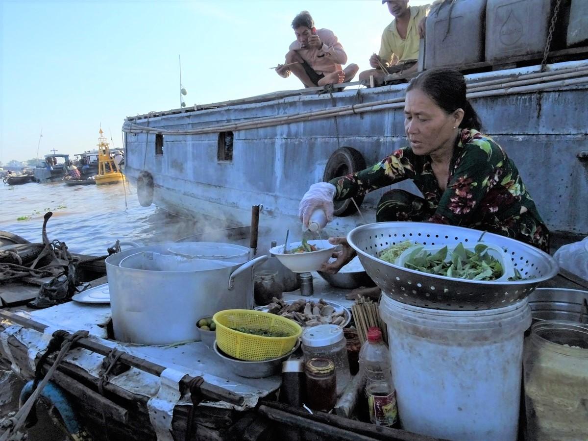 カントーの市内に一番近い水上市場にいた麺売りの女性。