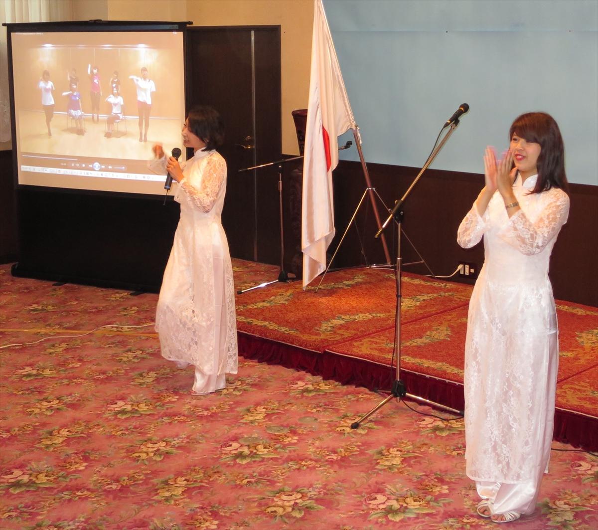 ダンスエンターテイメント団体「Shiny Smile Entertainment」がベトナムフェスティバル オフィシャルソング「Happy to see you」の踊りを指導し、出席者全員で練習した。