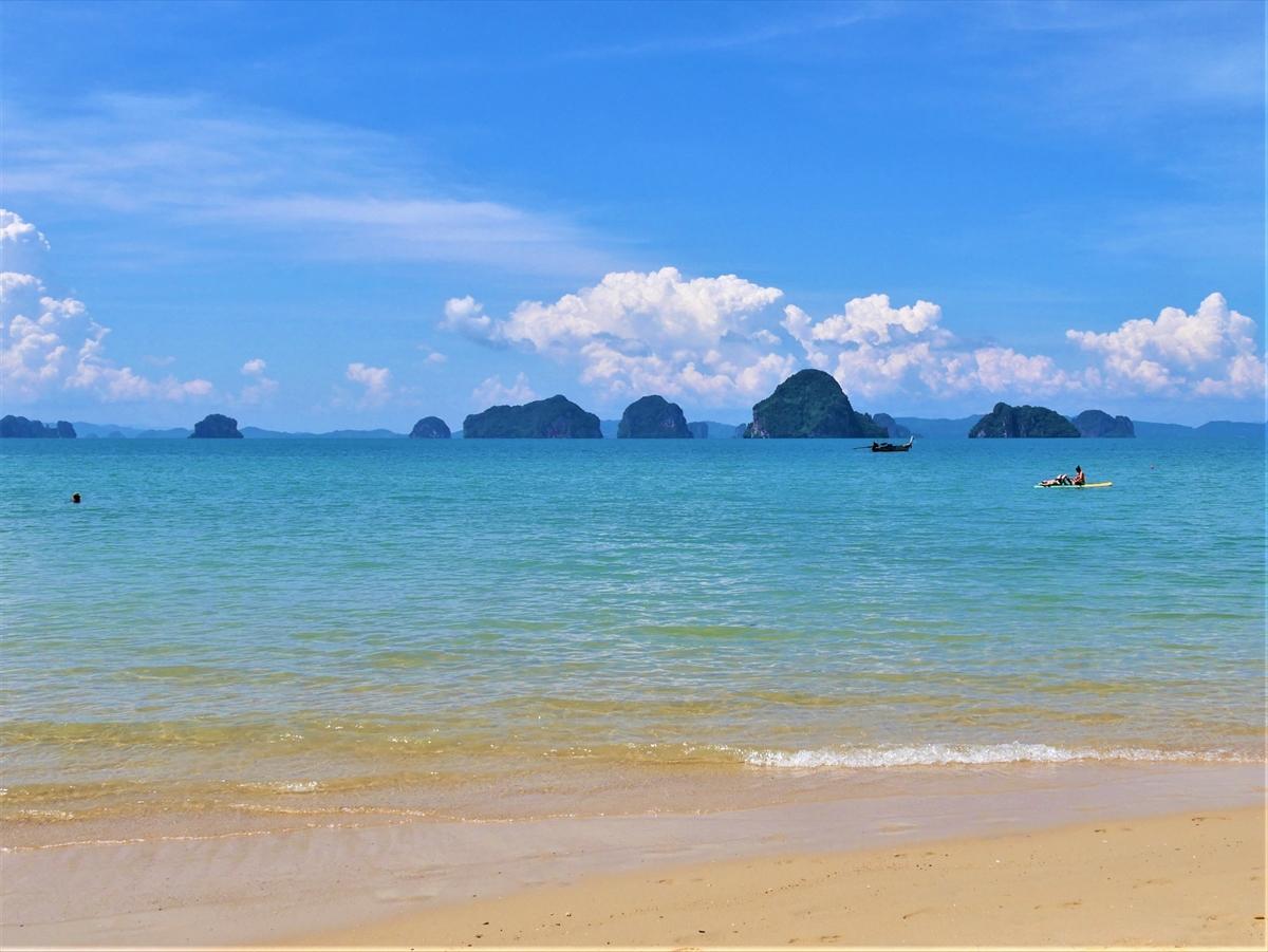 多くの小島が見える、クラビのビーチ Tubkaak Boutique Resort(2017年11月19日撮影)