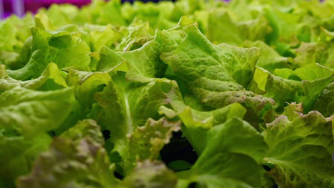 248平方メートルある屋内野菜工場では、サニーレタス、水菜、レッドラディッシュ、ホワイトラディッシュに加えて、グリーンレタス、ルッコラ、バジル、大葉、三つ葉、ベビーホウレンソウの10種類の野菜が育てられている。葉物・根菜いずれの野菜も、LED照明設備のもと、管理された土ベースの環境で育てることが可能。現在の総生産量は年間3.6トン。この屋内工場生産により、日本から同等の高品質なプレミアム野菜を輸入するコストと比較して、大幅なコストメリットが得られるという。