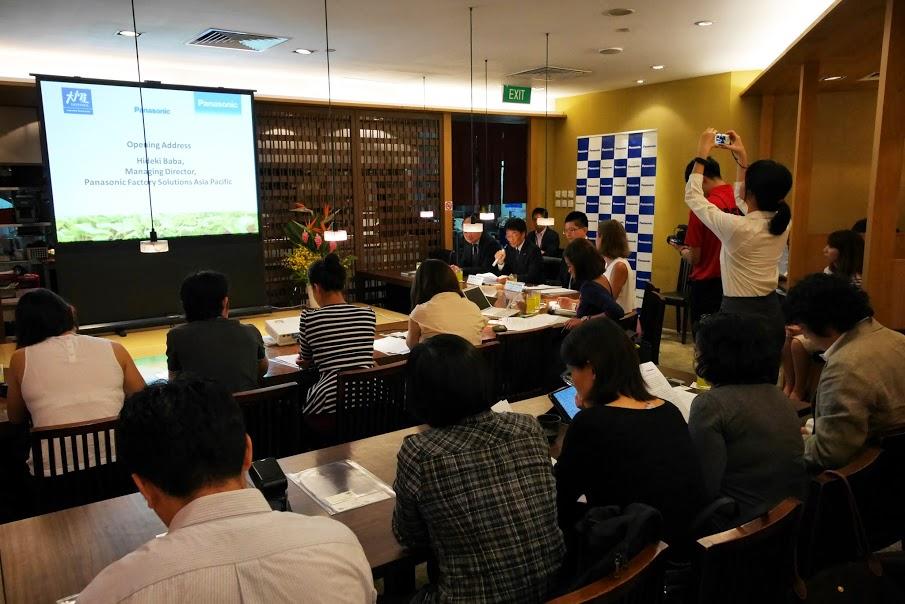 大戸屋でのプレス発表の様子。シンガポールのパナソニック野菜工場。