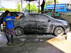 フィリピン洗車場 1台の車に2人のスタッフが丁寧な作業で大好評(2018年10月27日撮影)