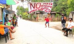 ラプラプ市の集落入り口でも、マスク着用を呼びかける(2020年4月19日午後撮影)