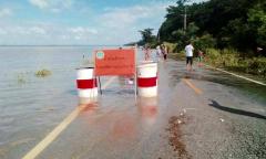 貯水量が限界を超えている東北部コンケーン県ウボンラットダム周辺の様子(タイメディアより)