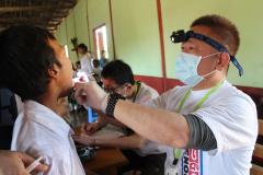 歯科健診をする葉清貴先生。宮崎から2回目の参加。