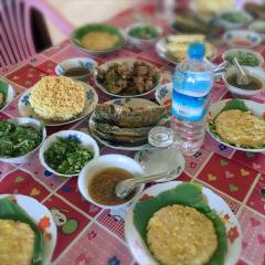 2011年度建設インポーコンユワティッ中学校分校で用意された昼食。
