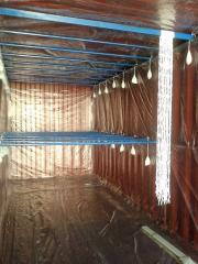 ハンガーが設置されたコンテナ内部。