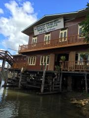 インレー湖上の織物工房では、観光客の見学も受け入れている。
