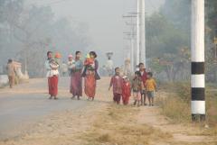 村をあげての歓迎の列。